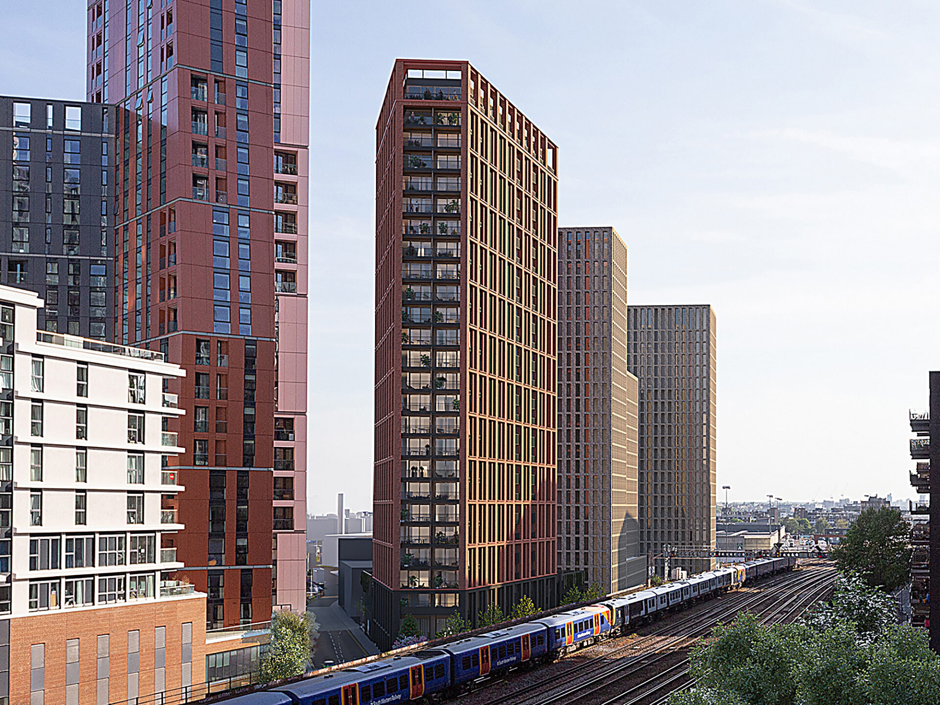 Apex One is a 201 unit Build To Rent development located in Nine Elms, This 26-storey, mixed-use residential development features a prominent brick tower and a low-rise pavilion, which includes shared amenities and retail spaces. The building serves as a landmark for the newly developed Nine Elms Underground Station and is positioned directly above two tunnels housing the Northern line extension to Battersea.